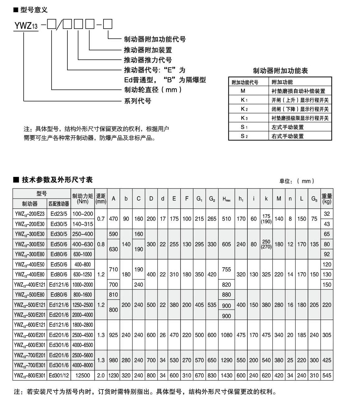 YW,YWZ13系列電力液壓鼓式制動器